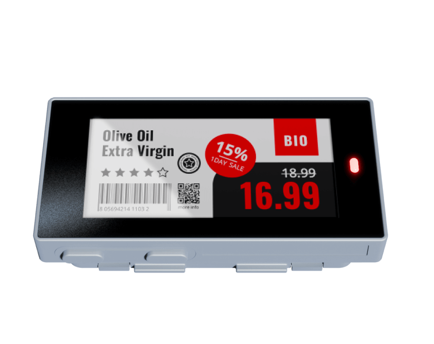 Las etiquetas electrónicas Newton permiten actualizar los precios y promociones de forma automática desde un panel central, eliminando errores humanos, reduciendo los costes operativos y mejorando la imagen de la tienda. Además, ofrecen etiquetas de alta resolución y hasta 10 años de autonomía.